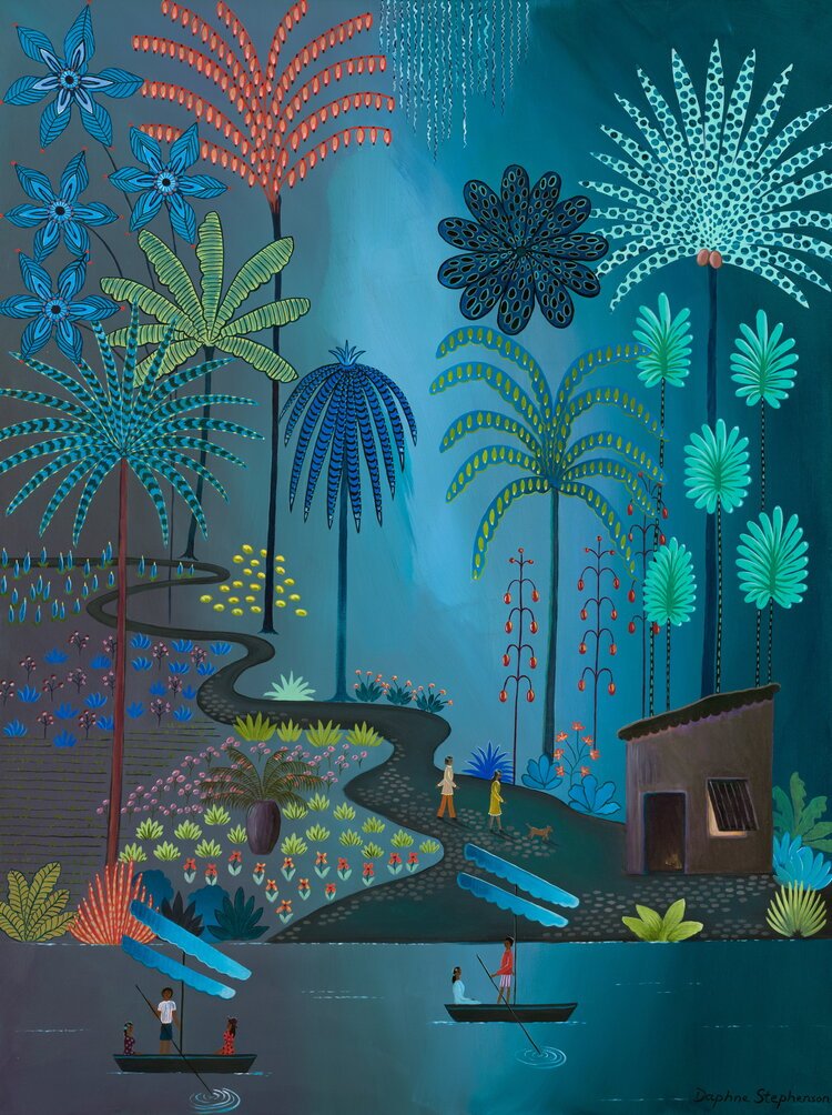 Daphne Stephenson is becoming increasingly well known for her unique style of Primitive Naïve Art.