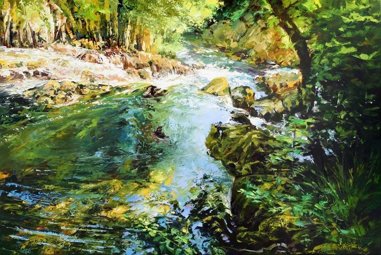 Now working from his London studio, Vivian creates engaging work using strong colour to convey the intense emotions that nature arouses in him and so entertaining the viewer with his incredible ability to “play” with light and space.